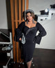 Стилна и удобна — тази еластична дънкова рокля приляга перфектно по тялото! Впечатляващите кристални ресни добавят изискан блясък, а еластичните рамене позволяват носенето ѝ с открити рамене или с прикрити рамене, в зависимост от настроението ви.