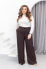 Striped pants combine elegance and comfort thanks to the premium crepe fabric, the perfect cut, and the pressed creases that visually elongate the legs and add refinement to the silhouette. The elastic waistband at the back ensures comfort, while the practical pockets and button-and-zip fastening complete the functionality. This versatile model is ideal both for formal pairings with a shirt and blazer and for more relaxed looks with a sweater or top, offering endless possibilities for stylish combinations.