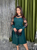Flared crepe dress finished with a belt made of the same fabric, perfectly shaping the waist. The neckline and sleeves feature mesh with embroidery. The light and airy cut adds delicacy and elegance to the look.