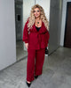 Two-piece set made from double-faced angora – warm and pleasant to the touch. The top has no fastening and comes with a matching fabric belt, while the pants have a relaxed, comfortable fit for everyday wear.