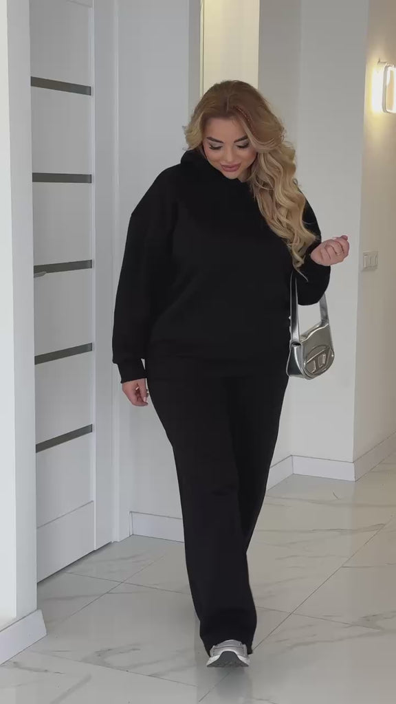 Quilted knitwear suit — warm, soft, and comfortable. The hoodie features a hood, while the pants have a wide cut and an elastic waistband for ease and freedom of movement.