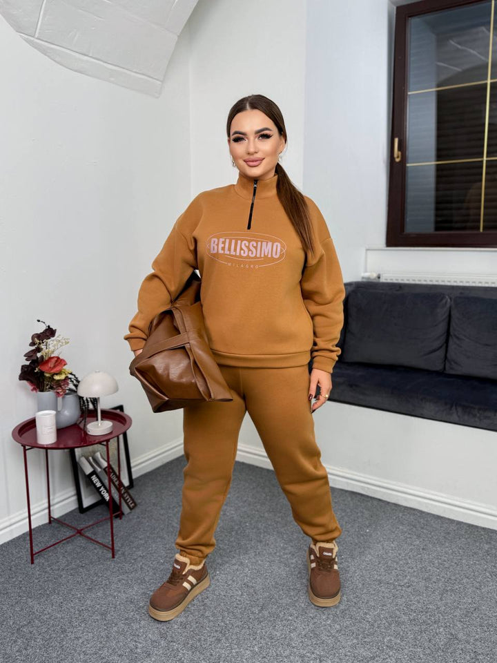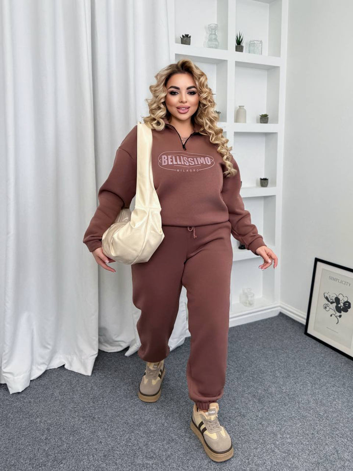 Oversized sports set with high-quality print – stylish and comfortable. The top features a short front closure, while the pants have cuffs and side pockets. A perfect choice for a fashionable look and everyday comfort.