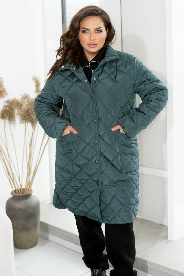 Quilted jacket with mid-length, high collar, and long sleeves with elastic cuffs combines comfort and style. Spacious pockets and rounded hem with slits add practicality, while versatile design pairs easily with both sporty looks and everyday outfits.