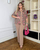 Interesting three-piece spring set – a tank top and pants made from high-quality American crepe, along with a button-up shirt. The pants feature an elastic waist and side pockets for added comfort, while the shirt sleeves are finished with decorative panels that give the look a stylish touch.