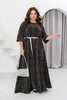 Dlouhé šaty s jemným třpytivým efektem v sobě spojují ženskost, lehkost a eleganci. Skladání, vzdušné tříčtvrteční rukávy a akcent v pase se stříbrným páskem vytvářejí ladnou siluetu a plynulý pohyb při chůzi. Perfektní volba pro zvláštní příležitosti, kdy chcete zazářit.