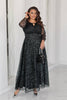 Dlouhé šaty s tylem a třpytivým fleecovým vzorem – stylová a nezapomenutelná volba pro zvláštní příležitosti. Průhledné rukávy dodávají lehkost, zatímco jedinečný výstřih zdůrazňuje eleganci siluety. Látka v sobě spojuje pohodlí a sofistikovanost, díky čemuž jsou tyto šaty výjimečným kouskem pro každou událost.