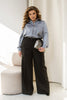 Pruhované kalhoty kombinují eleganci a pohodlí s prvotřídním krepem, perfektním střihem a záhyby, které opticky prodlužují nohy. Elastický zadní pas zajišťuje pohodlí, zatímco praktické kapsy a zapínání na knoflíky a zip dodávají funkčnost. Všestranný kousek, ideální pro formální outfity s košilí a sakem nebo pro ležérní styly se svetrem nebo topem.