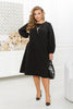 Volné šaty s kapsami – elegantní a minimalistický design s širokým, kulatým výstřihem. Boční kapsy dodávají praktičnost a styl. Rukávy jsou volné, stažené v zápěstí gumou, bez manžet. Bez zapínání, navržené pro pohodlí a eleganci. Součástí je ozdobný doplněk.