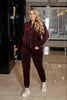 Sametová souprava s uvolněnou siluetou, která kombinuje sportovní vzhled s rafinovaným leskem. Bunda na zip s vysokým límcem se vyznačuje kamínkovým potiskem na zádech a pruhy na rukávech, zatímco kalhoty s elastickým pasem, kapsami a bočními pruhy zdůrazňují linii postavy. Všestranná volba pro každodenní nošení i stylové výlety, snadno se kombinuje s teniskami, sportovními botami nebo trendy botami na platformě.