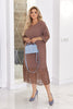 Šaty rovného střihu z krepové látky se zdobenou krajkou. Horní část má kulatý výstřih a zadní část má zapínání na knoflík. Spodní díl je rozšířen s našitým volánem. Ideální pro formální události.