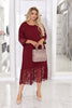 Šaty rovného střihu z krepové látky se zdobenou krajkou. Horní část má kulatý výstřih a zadní část má zapínání na knoflík. Spodní díl je rozšířen s našitým volánem. Ideální pro formální události.