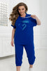 Souprava topu a kraťasů v ležérním stylu. Lehké a pohodlné, ideální pro horké letní dny. Prodloužené tričko má půlkulatý výstřih s odnímatelnou ozdobnou vázací šňůrkou. Zkrácené kalhoty s vysokým pasem mají všitý elastický pas a manžety u kotníků. Boční kapsy jsou doplněny pro pohodlné nošení drobností.