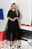 Das Kleid aus hochwertigem Strickstoff mit luftigem Tüllbesatz verleiht ihm ein modernes Volumen und einen dezenten Schimmer. Der funkelnde Schriftzug „Dream“ sorgt für einen glamourösen Touch, während die lockere Silhouette mit ellbogenlangen Ärmeln und Rundhalsausschnitt für Komfort und Stil sorgt.