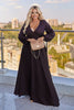 Langes Kleid mit elegantem Design. Der leichte und zarte Stoff verleiht dem Kleid einen raffinierten, luxuriösen Look. Es hat einen V-Ausschnitt und lange Ärmel, die an den Handgelenken mit Manschetten schmal zulaufen. Ein verdeckter Reißverschluss auf der Rückseite erleichtert das An- und Ausziehen. Die Kleidlänge beträgt 150 cm, die Ärmellänge 65 cm. Eine ideale Wahl für Abendveranstaltungen und formelle Anlässe.