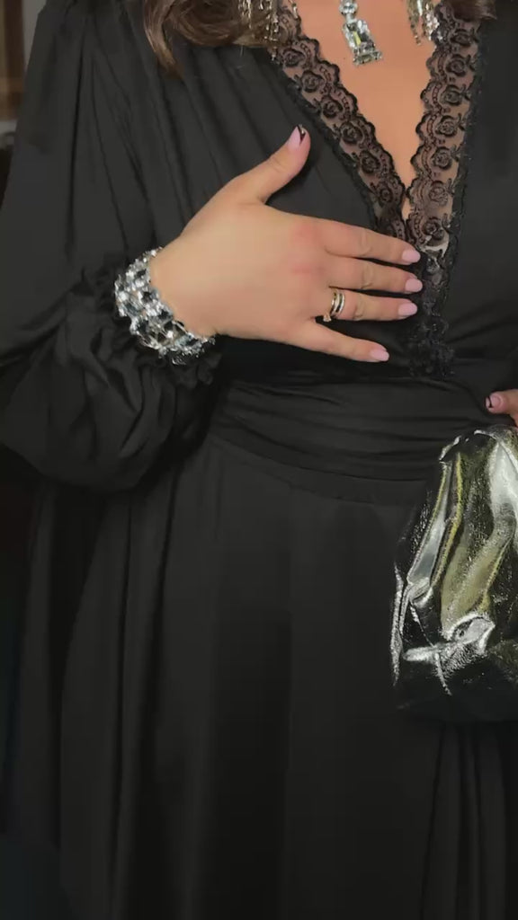 Το πάνω μέρος είναι διακοσμημένο με δαντέλα και κομψά ντραπέ που τονίζουν όμορφα το στήθος. Οι ενσωματωμένες ενισχύσεις προσθέτουν κομψότητα, ενώ το τέντωμα στη μέση δημιουργεί μια θηλυκή σιλουέτα.