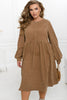 Este vibrante y femenino vestido midi, confeccionado en terciopelo texturizado, añade un toque de alegría, romanticismo y feminidad a tu look. Presenta cintura alta con botones decorativos y mangas largas con puños.