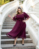 Haljina s raširenom siluetom i elegantnim mrežastim detaljima na donjim rukavima i gornjem dijelu kroja. Rukavi su 3/4 duljine s volanima za dodatni efekt. Uključuje remen za naglašavanje struka. Pogodna za formalne i posebne prigode.