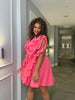 Kratka haljina s volanima, duljine 51 cm od struka i kopčanjem na omotanu podlogu. Model ima odličan kroj i zvonastu suknju koja ne dodaje volumen. Izrađena je od lagane i ugodne tkanine na dodir. Dekorativni volani dodaju prozračan osjećaj i upotpunjuju cjelokupni stil dizajna.