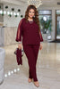 Ženski dvodijelni set koji se sastoji od klasičnih hlača i bluze. Dizajn ima elegantne mrežaste detalje koji dodaju moderan dodir. Bluza ima blago pripijenu siluetu, okrugli izrez i mrežaste umetke na rukavima. Praktičan i udoban set koji lako može postati omiljen za svakodnevno nošenje.