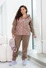Sport szett cipzáras kabáttal, széldzseki és polár kötött anyag kombinációjából – a kényelem és a stílus ötvözete. A kabát kapucnival, húzózsinórral és oldalsó zsebekkel rendelkezik, míg a kötött, mandzsettás ujjak meleget és mozgásszabadságot biztosítanak. A magas derekú, gumírozott, zsebes nadrág praktikus és divatos, így ez a szett tökéletes az aktív napokra és a mindennapi kényelemre.