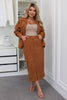 Modern szett: kabát + szoknya hasítékkal — szezonális kötelező darab. Pamutbársonyból készült a kényelem és a stílus érdekében.