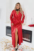 Elegante abito lungo pensato per esaltare la tua femminilità e sicurezza. Il taglio accattivante presenta un elegante incrocio in vita e uno spacco profondo, per un look raffinato e festoso. Una scelta perfetta per occasioni speciali e serate eleganti.