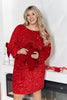 Abito corto e dritto con maniche lunghe in morbido velluto, decorato con paillettes scintillanti. La silhouette elegante e pulita esalta la figura, mentre la lucentezza del velluto aggiunge un tocco festoso ed elegante.