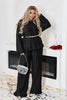 Set van gestructureerde stof, bestaande uit een losse blouse met lange, dubbele mouwen en een wijde broek met elastische tailleband. Inclusief bijpassende riem om het silhouet te vormen. Perfect voor comfort en een elegante look.