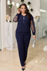 Damespak – een mix van elegantie en comfort. De set bestaat uit een stijlvolle blouse en een rechte broek, waardoor het een perfecte keuze is voor formele en feestelijke gelegenheden.