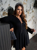 Korte jurk met een opvallende halslijn, versierd met kristallen strikbandjes. Hiermee kun je de diepte van de halslijn eenvoudig aanpassen – van een delicate look tot een gedurfde stijl.