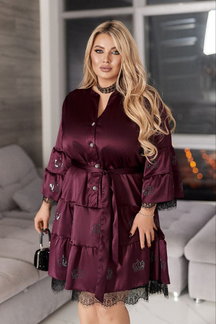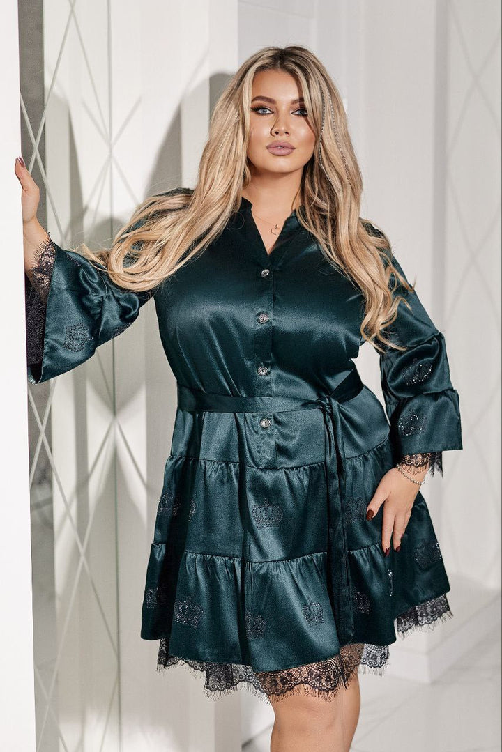 Satijnen jurkje met steentjes