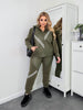 Warme en zachte tweedelige set gemaakt van hoogwaardige materialen. De sweater heeft een rits, capuchon, grote steekzakken en manchetten aan de mouwen en zoom. De broek heeft een elastische tailleband en steekzakken, waardoor de set een comfortabele en stijlvolle keuze is voor dagelijks gebruik.