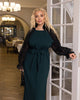 Elegancka, długa sukienka z siateczkowymi, długimi rękawami, długości midi i stylowym rozcięciem z boku. Model posiada pasek, który podkreśla talię, tworząc wyrafinowaną i kobiecą sylwetkę. Idealna na oficjalne i specjalne okazje.