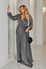 Długa sukienka maxi z dekoltem w serek i zamkiem błyskawicznym z tyłu. Wykonana z elastycznego lureksu — lśniąca i wygodna, idealna na specjalne okazje.