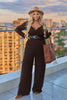 Elegancki damski kombinezon z drapowaną górą, podkreślającą dekolt i dodającą szyku. Szerokie spodnie w stylu palazzo optycznie wydłużają sylwetkę, a pasek podkreślający talię idealnie modeluje talię. Miękka dzianina idealnie dopasowuje się do ciała, zapewniając komfort i styl.