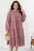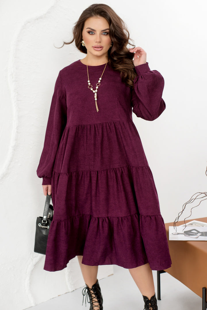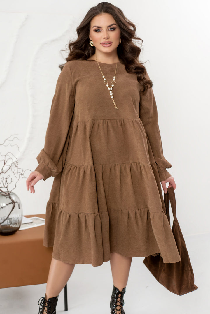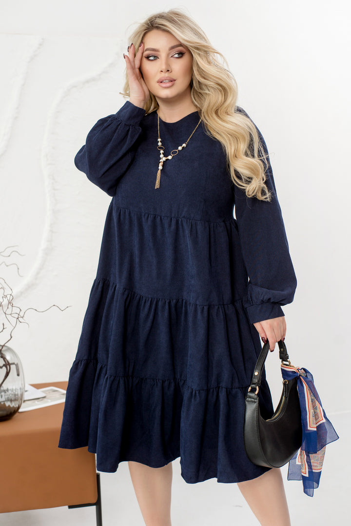 Sukienka o kroju litery A, wykonana z miękkiego aksamitu, pozwoli Ci wyglądać kobieco i atrakcyjnie nawet w chłodniejsze dni i pory roku. Posiada długie rękawy z mankietami i zapięciem na mały guzik pod dekoltem. Luźny dół z wieloma warstwami falbanek tworzy efektowny i niezapomniany look.