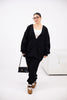 Two-piece velvet set with a tank top. The outfit features a deep V-neckline, with the tank top elegantly peeking through, while the pants have an elastic waistband and cuffs at the hem. The tank top is made of highly stretchy fabric (over 20 cm stretchability), which may cause a slight shortening of the length when stretched.