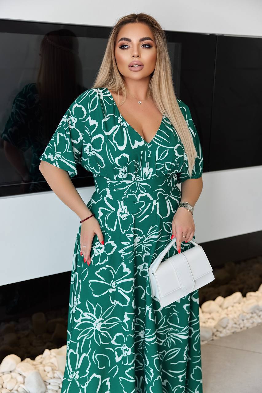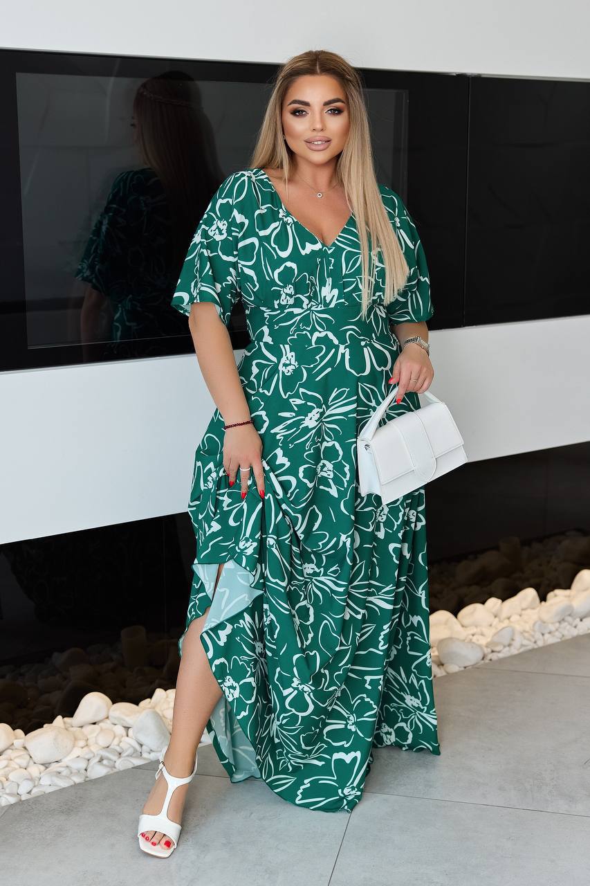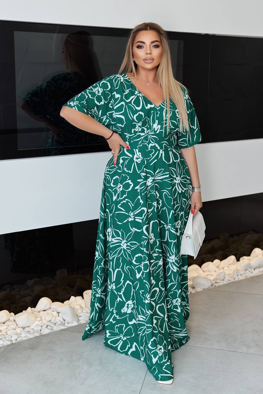 Discover the elegant long dress made from lightweight soft fabric, featuring comfortable long sleeves — perfect for year-round wear. The dress fastens with a back zipper and offers a refined V-neckline that adds a touch of feminine charm. The flared cut accentuates the silhouette just below the bust, while the unique pattern brings freshness and individuality to your look.