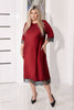Satin dress with a knee-length and a straight cut, featuring delicate lace detailing along the bottom edge. An elegant and refined design, suitable for both everyday and evening looks.