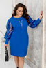 Elegant solid-color dress with a straight silhouette, perfect for any celebration or party. Highlights include voluminous semi-sheer embroidered sleeves with fitted buttoned cuffs and a back zipper closure. Comes with a decorative accessory.