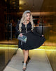 Dress made of stretchy knitwear with excellent elasticity, extremely soft and pleasant to the touch. The neckline is decorated with a delicate ruffle—a seasonal fashion accent. The belt is a cord with sparkling stones, adding shine and festive charm to the look.