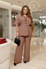 Blouse and wide pants set. The blouse has a straight silhouette. The pants have a straight cut and an elastic waistband. Made from soft and comfortable fabric, it is perfect for both everyday wear and more formal occasions.