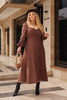Rochie midi elegantă, evazată, care combină stilul și confortul — perfectă pentru ocazii speciale.