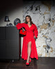 Rochie lungă cu volane din mătase moale — lungime 143 cm, se înfășoară confortabil și are o croială flatantă. Materialul este ușor și plăcut la atingere. Legăturile decorative, o tendință de top în acest sezon, adaugă aerisire și farmec rafinat.