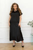 Costum din satin solid, care include bluză și fustă. Bluza are decolteu în V și mâneci scurte cu manșete pentru confort și stil, în timp ce fusta lungă cu talie elastică permite libertate de mișcare. Materialul ușor și neted accentuează silueta și oferă o senzație de confort. Modelul din fotografie poartă mărimea 2XL-3XL.
