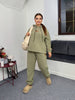 Štýlová športová súprava vo väčšom voľnom prevedení na prechádzky. Mikina má nastaviteľné zaväzovanie na leme, vďaka čomu sa dá nosiť dlhá alebo vyvýšená. Vyrobená z obojstranného flísu, ktorý si zachováva svoju kvalitu aj po vypraní – nekrčí sa, nežmolkuje a zostáva mimoriadne teplý a pohodlný. Perfektná voľba na každodenné nosenie.