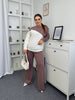 Dvojfarebná dvojdielna súprava – sveter s vysokým golierom a nohavice v štýle palazzo. Vyrobená z hustej, veľmi teplej a mäkkej látky, ktorá je príjemná na dotyk. Táto súprava ponúka útulné pohodlie a zároveň zaisťuje elegantný a štýlový vzhľad.