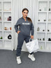 Nadrozmerná športová súprava s kvalitnou potlačou – štýlová a pohodlná. Vrch má krátke zapínanie vpredu, zatiaľ čo nohavice majú manžety a bočné vrecká. Perfektná voľba pre módny vzhľad a každodenné pohodlie.