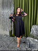 Široka obleka z mrežastimi rokavi