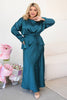 Sproščena bluza z dolgimi rokavi in ​​asimetričnim krojem, z zavezovanjem s tankim pasom za poudarjanje pasu. V kombinaciji s satenastim midi krilom s sproščeno silhueto ustvarja eleganten in ženstven videz, popoln za posebne priložnosti ali večerne izhode.